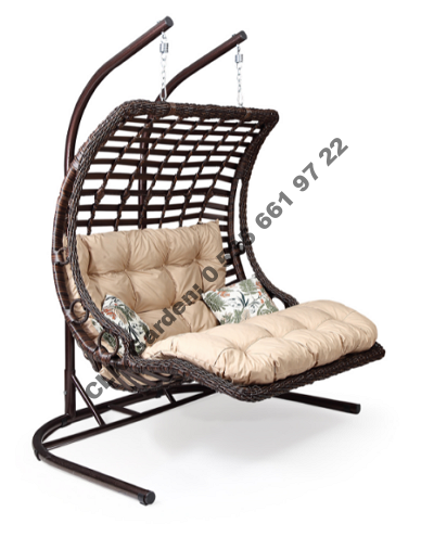 CLK Garden Rattan Bodrum Double Kahverengi Bahçe Balkon Teras Salıncakları İki Kişilik